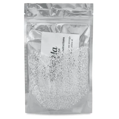 Crystal Art can be rolled into thin strips, sculpted into simple shapes, or pressed into molds and blended with other Worbla products. It’s similar to Worbla’s Deco Art in that it comes in pellet form. Heat the pellets with a heat gun or other heat source to 230°F. Once activated, the pellets can be blended into a translucent, workable material that can be painted and tinted with markers, alcohol inks, resin dyes, and polyester dyes.