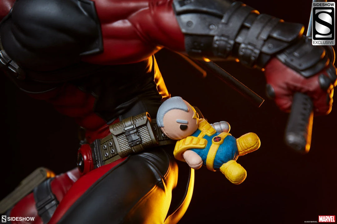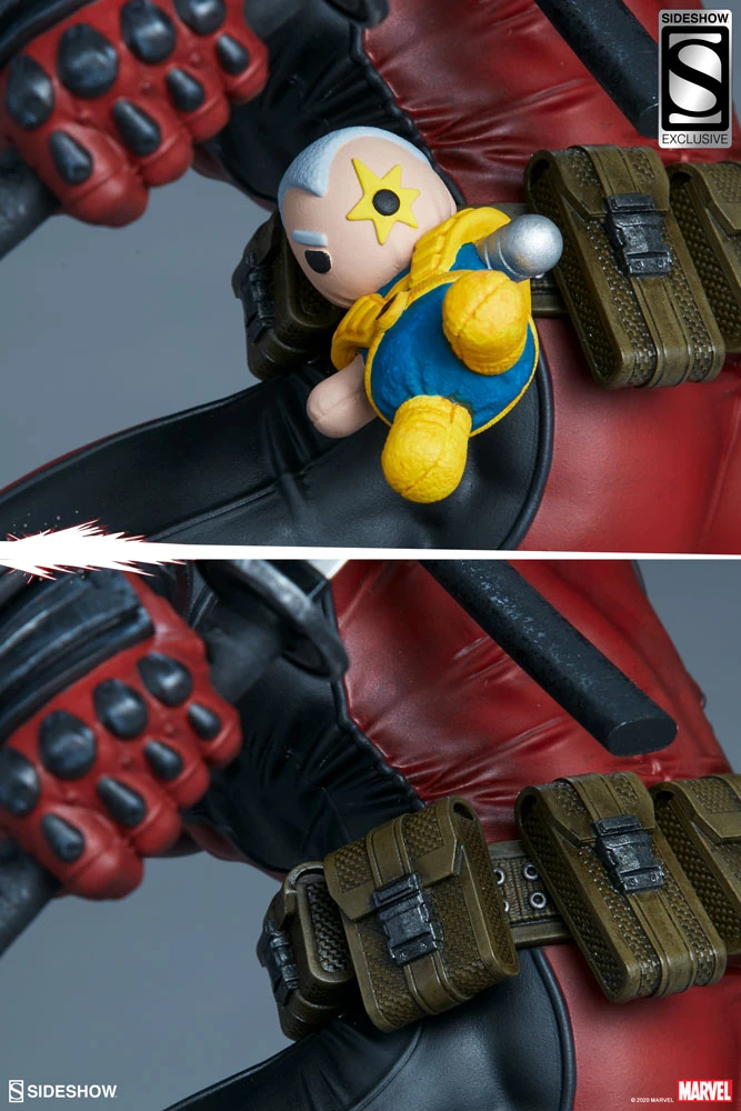 The Exclusive Edition of the Deadpool Premium Format™ Figure includes a sculpted Cable Doll that can be attached to Wade’s belt so he can carry his best friend everywhere he goes. Pair Deadpool with the Exclusive Edition of Sideshow’s Cable Premium Format™ Figure to create a display (and a legendary friendship) that crosses the multiverse.