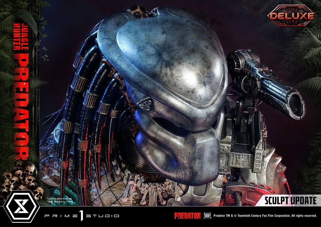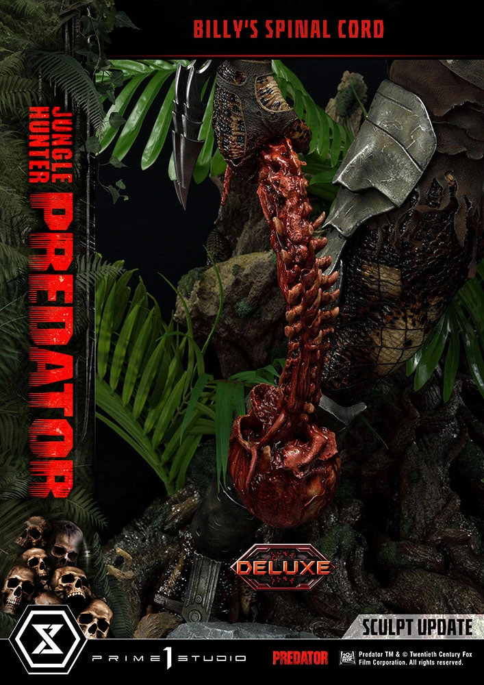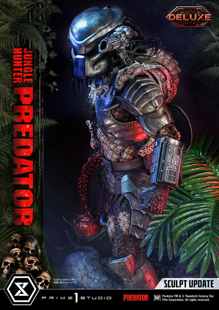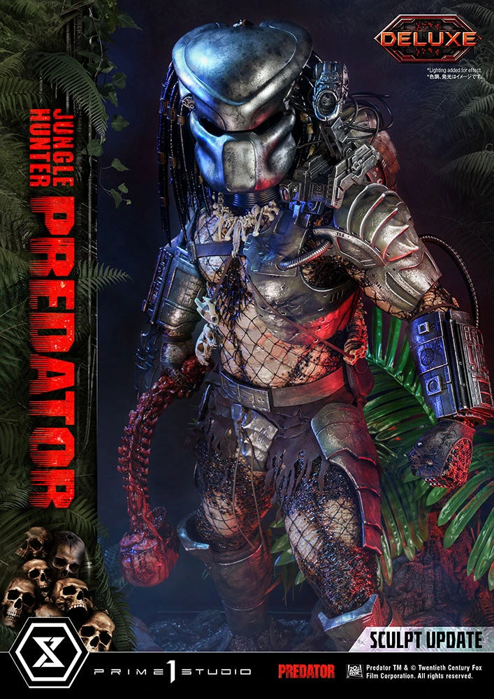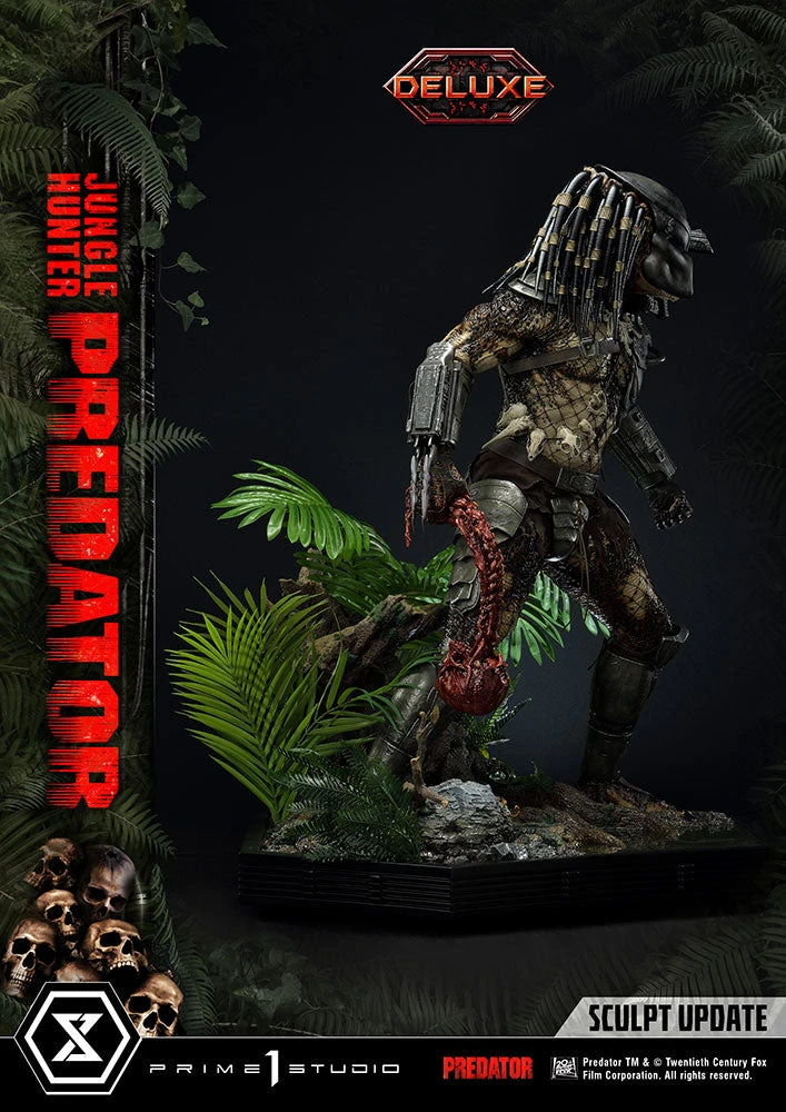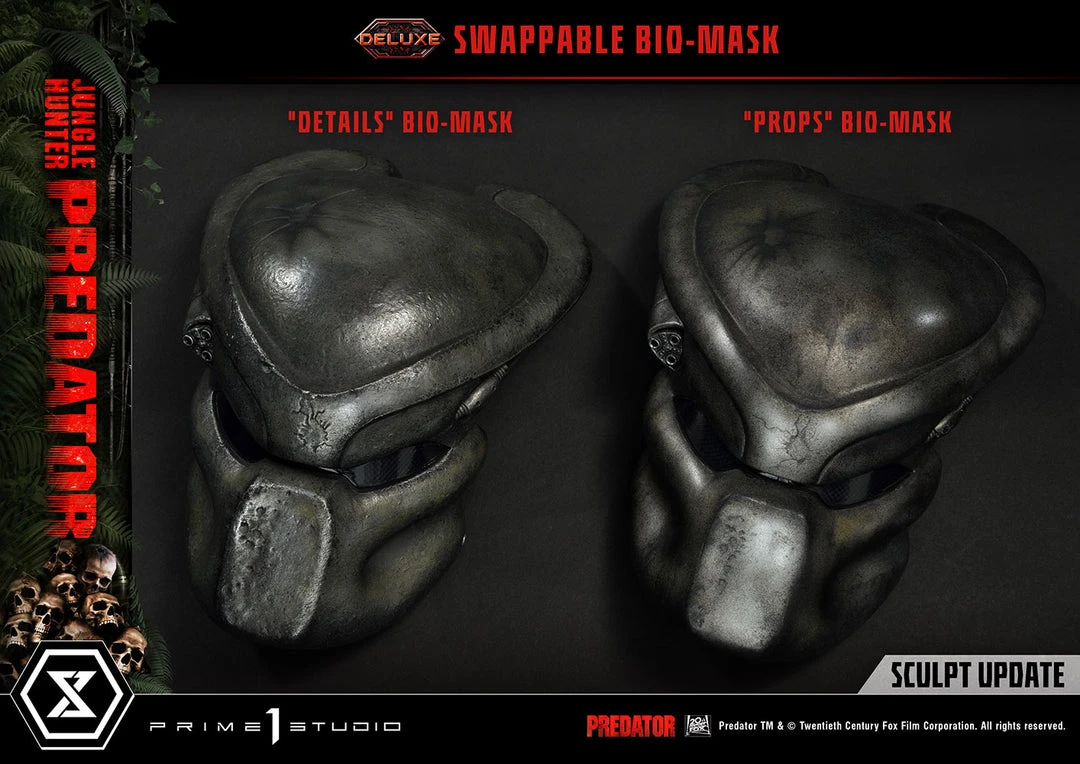 Standing majestically at over 35 inches tall, the Jungle Hunter Predator reveals itself as an imposing, otherworldly peril intent on relentlessly hunting its prey. In this pivotal moment, where the Jungle Hunter Predator reveals his true form to Dutch (the main protagonist of the film), the skilled artisans at Prime 1 Studio have seated the Predatorβs Bio Mask in the gnarled roots of a tree. In the film, the Predator takes off his Bio-Mask and drops it in the putrid, leech-infested water of the jungle, which we have faithfully recreated here with translucent resin and detailed inclusions, for a convincing watery effect.