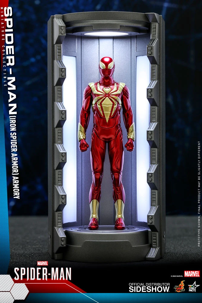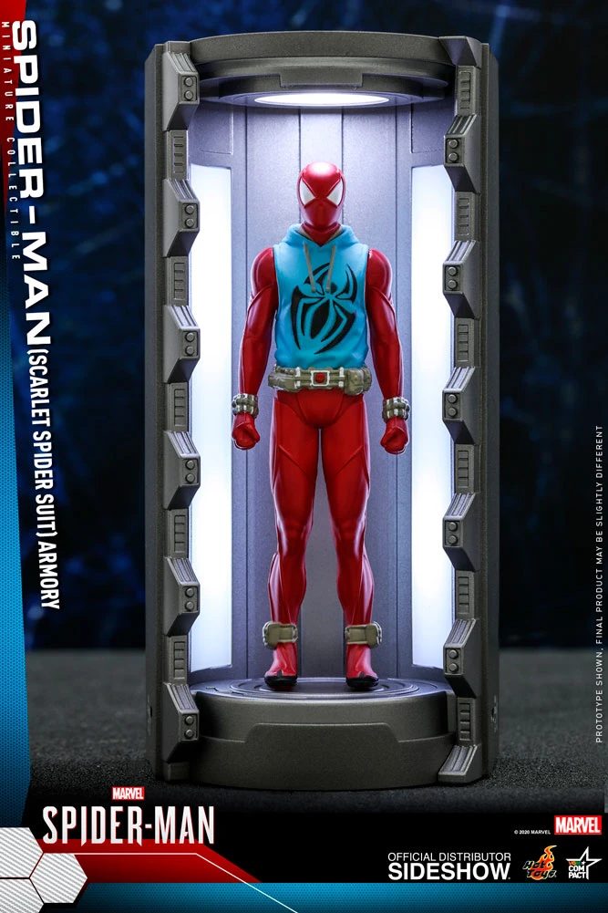 The brand new Marvel’s Spider-Man Spider-Man Armory Miniature Collectible (Series 2) line-up specially features Spidey suits in miniature size including the Secret War Suit, Cyborg Spider-Man Suit, Scarlet Spider Suit, Damaged Classic Suit, Electrically Insulated Suit, and Iron Spider Armor; display heroically upright in the reimagined armory with LED light-up function. Each Armory Collectible measures approximate 12cm tall, whereas each Spider-Man mini-figure measures approximately 8.5cm tall.